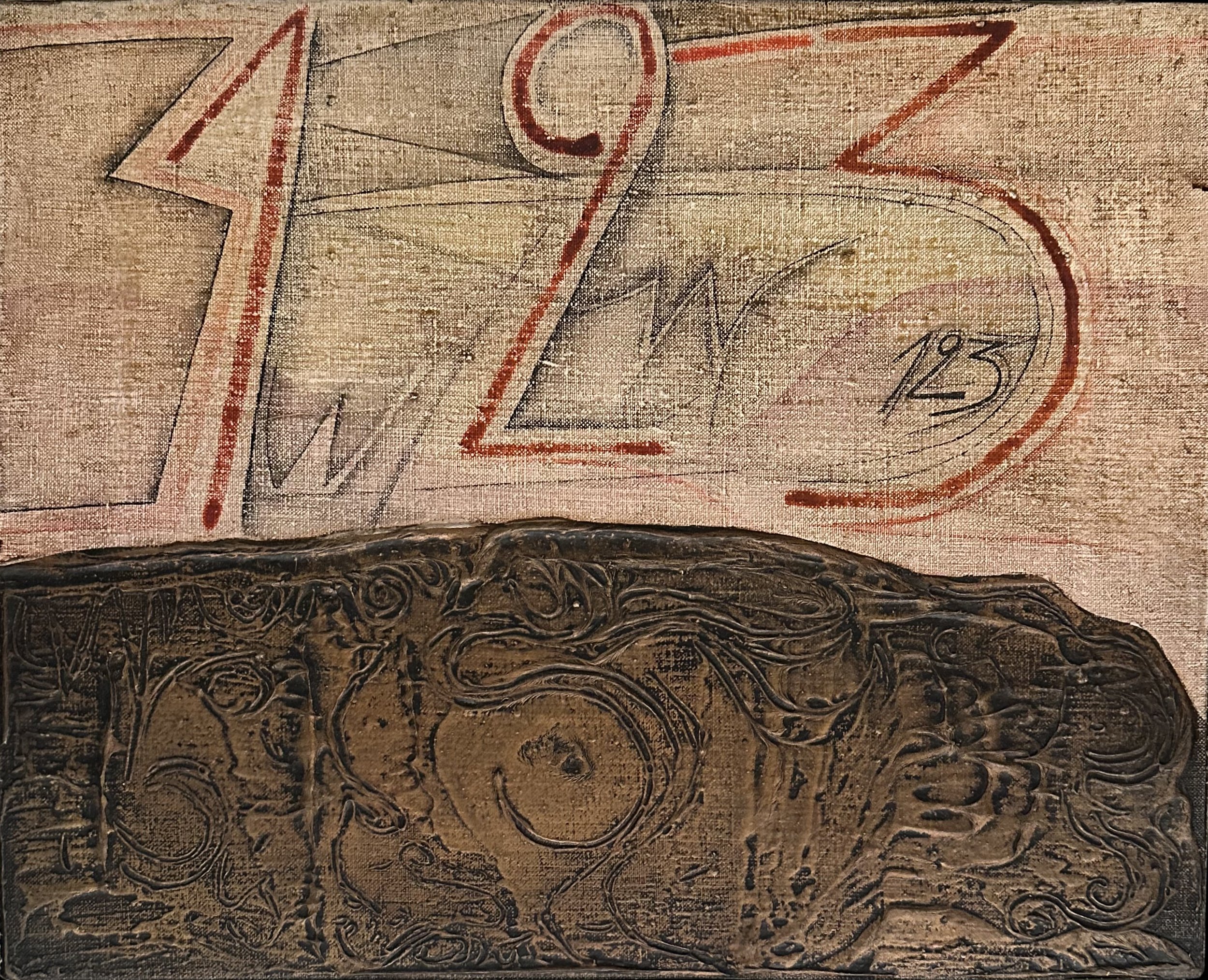 The vast informalist work of 1961 illustrates a moment in which his celebrated drippings, which had elevated him to the peak of international success —especially at the 1959 São Paulo Biennial—, gave way to a growing sense of space. At the height of his triumph, Cuixart decided to abandon informalism, which he considered exhausted, and anticipated the neo-figurative currents by nearly a decade with an intellectualized language that triumphed in New York —from where these works originate—, where line, sign, and symbols confront matter in an unusual syntax.